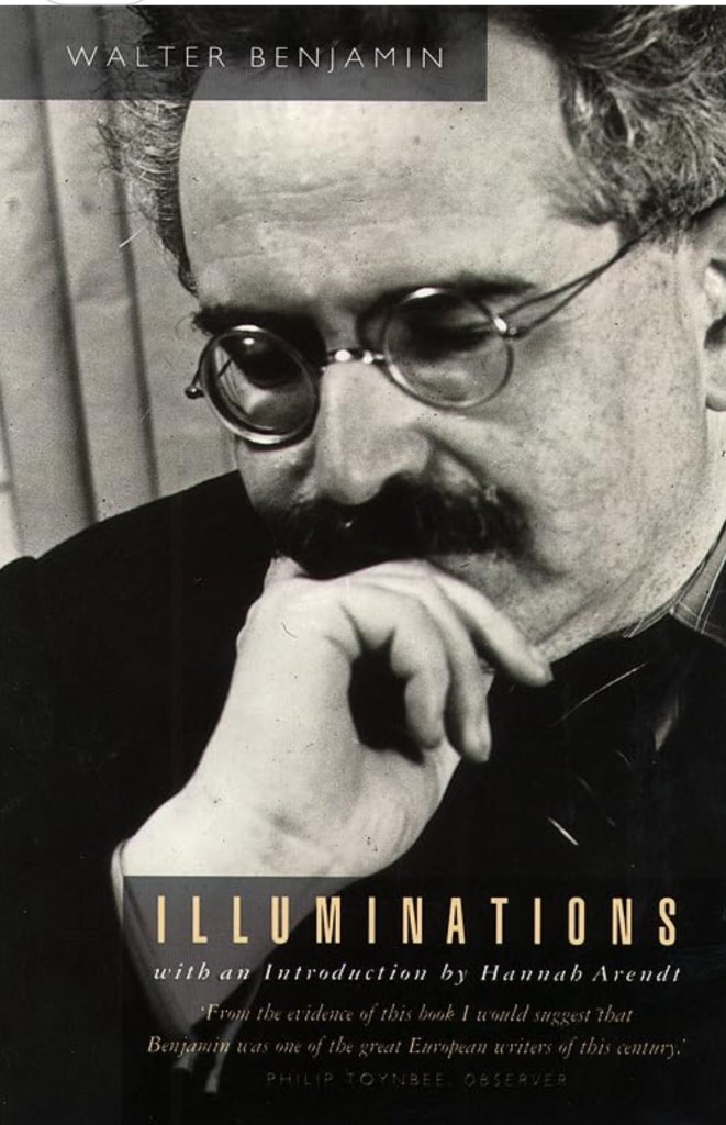 I think I was not even twenty-one then, and my language ability was nowhere near what it is now, at forty-five. The cover of Illuminations, the edition I held, had that familiar image of Benjamin ruminating, as though caught mid-thought. How much I understood of what I read is less important than the fact that I remember it still: the moment, the smell from the kitchen, the sense of something beyond my grasp but already part of me. I also remember the innocuous remark she made about me reading things beyond my abillity, but I’ve since realised that learning a language is not reading what is easy, but about following what draws you. That is the best motivation. It was for me then, and still is, as I’ve found again in learning Spanish and Chinese, and perhaps also in the disappointments of human relationships.