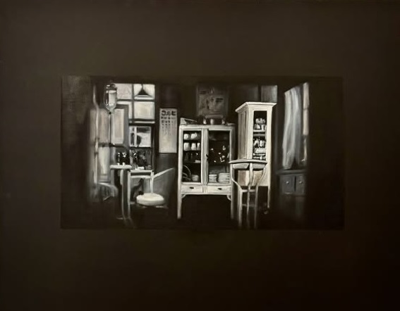 Years later, when watching an old Japanese film by Ozu, there was a scene of an empty clinic. It reminded you of the black square and the smell of the hospital. With the white borders, Malevich painted a black square for us to stare into the black opaque abyss. The black square, a blind window, is now inverted, an appropriated image bordered and framed by black instead.